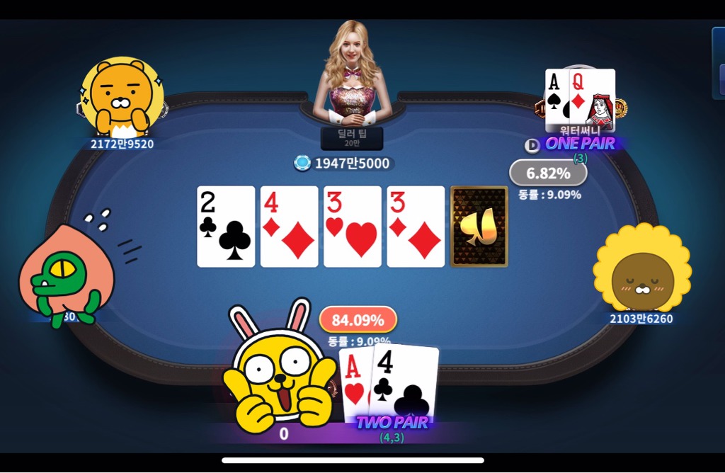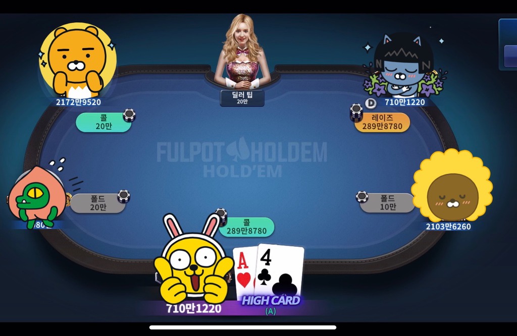 자기가 가진 패를 보여주면서 조롱하는 이모티콘을 날리기도 해서