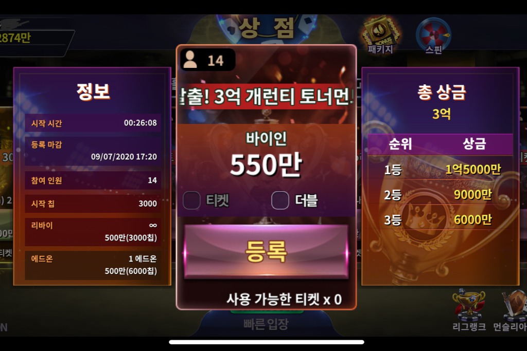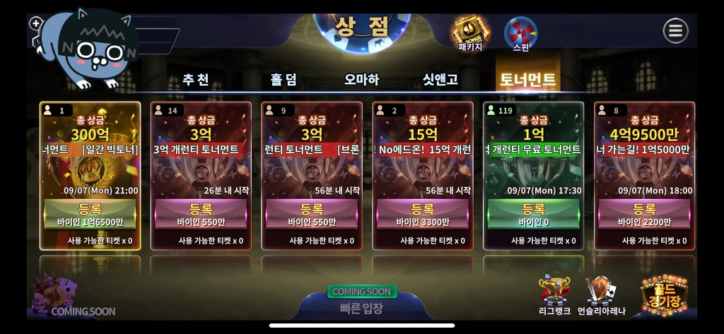 위에서 무료토너먼트는 참가하지 말라 했는데