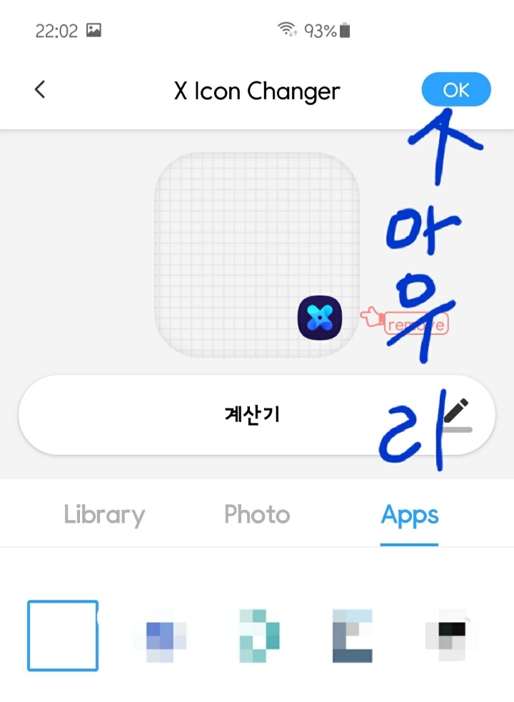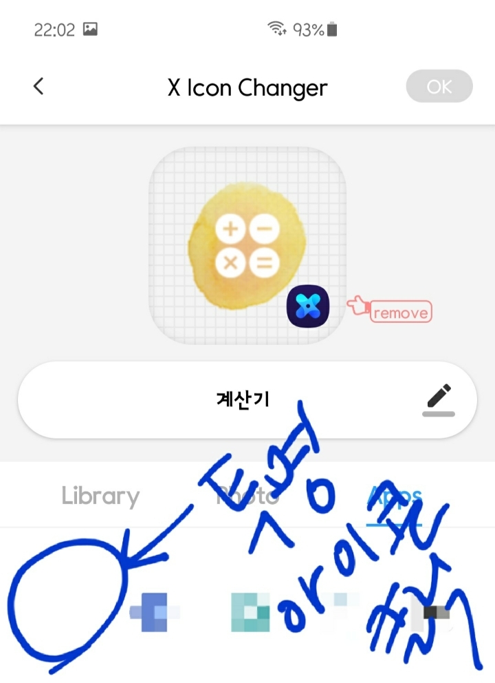 1. 아이콘 바꾸기를 키면 이런 화면이 나옴 난 계산기를 바꿔보겠음 계산기 선택