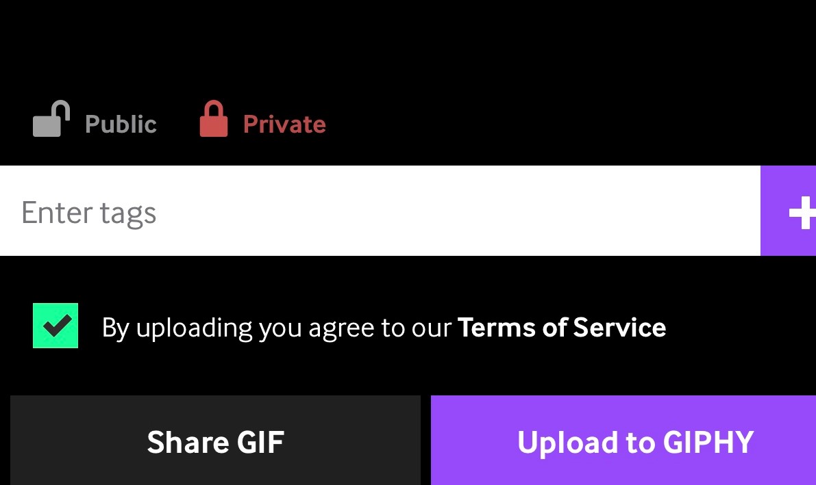 Private로 설정하고 Upload to GIPHY 버튼을 누름