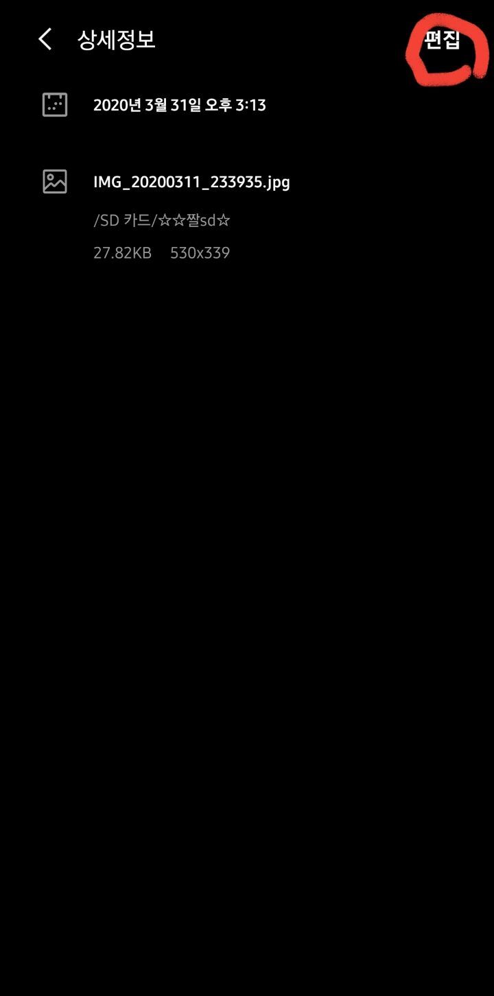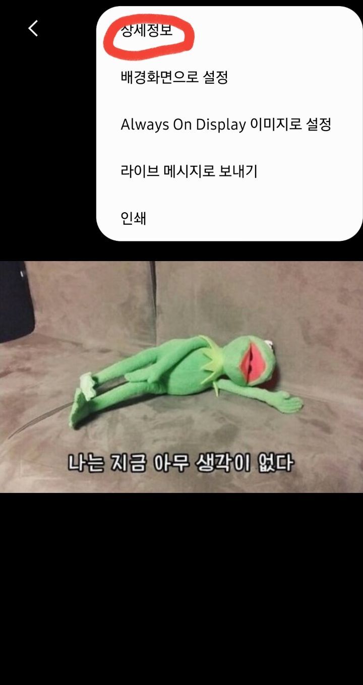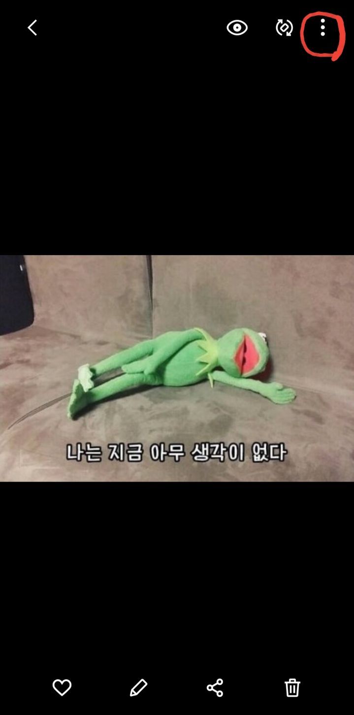 1. 먼저 갤러리에 저장한 짤을 찾아서 오른쪽 상단의 점세개를 눌러줘!