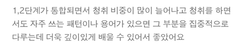 사실 시작하기 전엔 큰 기대 안 하고 ‘학교 다니는 동안 감 안 잃게 유지하는 수단이라고 생각해야겠다’ 했었는데 4개월 정도 해보니 실력 유지를 넘어서서 향상되는 게 느껴져! 사실 박코치를 졸업한 후에 영어 환경이 확 사라지다 보니 잊어버리는 것도 많고 확실히 실력도 그때보단 줄었는데 전화영어를 시작 안 했으면 난 정말 영어바보가 되었을 것 같다는 생각이 들어 진심으로... 그만큼 하길 잘 한 것 같아 하지만 학원에서처럼 옆에서 지켜보고 관리해주는 사람이나 강제성이 없는 만큼 자기가 스스로 노력해야해! 난 민병철의 커리큘럼이나 4step 체계에 대해 만족하는 사람으로서 앞으로도 꾸준히 이용할 것 같아!