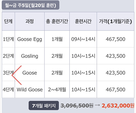 박코치어학원은 Goose Egg 1개월 / Gosling 2개월 / Goose 2개월 / Wild Goose 2개월 이렇게 총 7개월로 구성되어 있고 영어공인인증성적이 있으면 처음부터 Gosling이나 Goose, Wild Goose 반으로 점프해서 시작할 수도 있어. 하지만 난 시간이 촉박한 게 아니라면 꼭 Goose Egg부터 7개월, 최소 6개월 코스를 밟는 게 좋다고 생각해. 왜냐하면 학원 수업방식이 특이한 편이라 Goose Egg 때 여러 번 설명 듣고 적응하지 않으면 그 이후가 더 혼란스러울 수 있거든 게다가 커리큘럼이 정말 체계적이고 단계적으로 짜여있어서 여기서 설계한대로 따라갔을 때 가장 좋은 효과가 난다고 생각해. 그런데 최소 6개월이라고 언급한 이유는 사실 나도 7개월을 했지만 마지막 6-7개월차 때는 정말 힘들고 지겹고 그러더라고.. 그래서 중간에 한 번 월반을 해서 6개월로 마무리하는 것도 나쁘지 않다고 생각해 하지만 난 처음에 시작한 반 동기들이랑 마지막까지 똑같이 끝내고 싶어서 굳이 중간에 스킵하지는 않았어. 그리고 이건 비밀인데 Goose Egg때만 박코치의 설립자인 찐박코치님이 인풋 훈련(메인수업)을 맡거든 근데 수업 중에 딴 길로 엄청 잘 새고... 빻은 소리도 많이 해서 사실 애들 대부분 싫어해; 난 초반 한 달에 이 수업이 너무너무 싫어서 goose egg를 스킵하고 싶었어 근데 말했듯이 동기들이랑 같이 가고 싶어서 참았음...ㅠ 월반은 매달 월반 테스트를 보는데 거기서 성적이 좋고, 본인도 원하고, 담임코치님도 찬성하시면 월반할 수 있어!