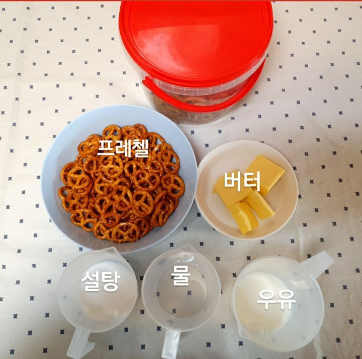 프레첼, 버터, 우유, 물, 설탕 이야!!!!