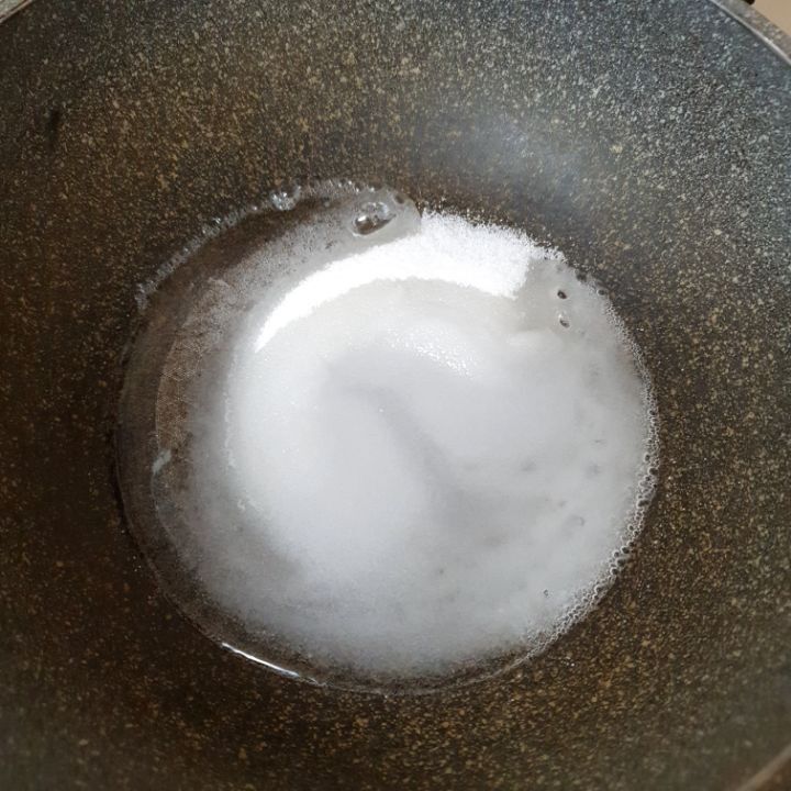 1. 일단 냄비에 설탕이랑 물 넣고 중불로 끓여줘!!!!