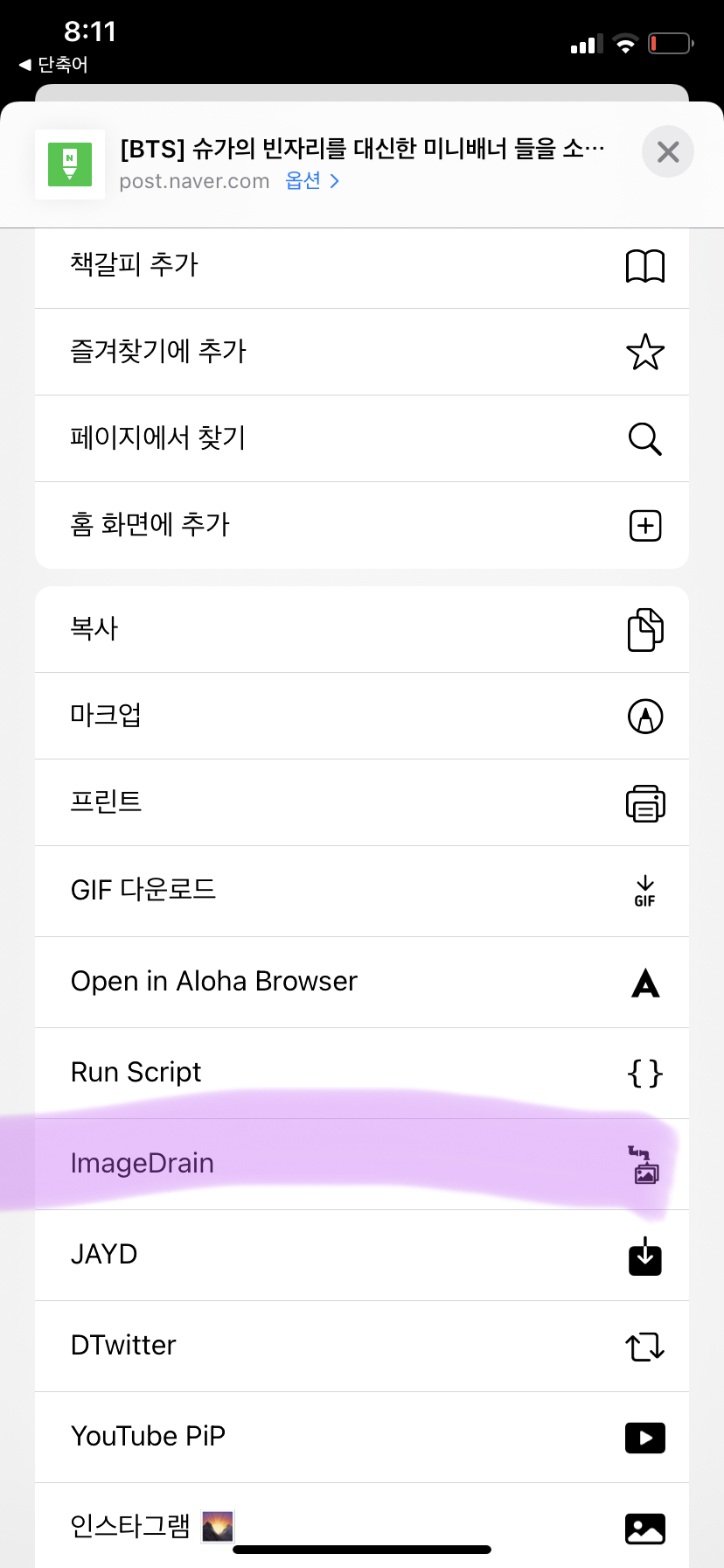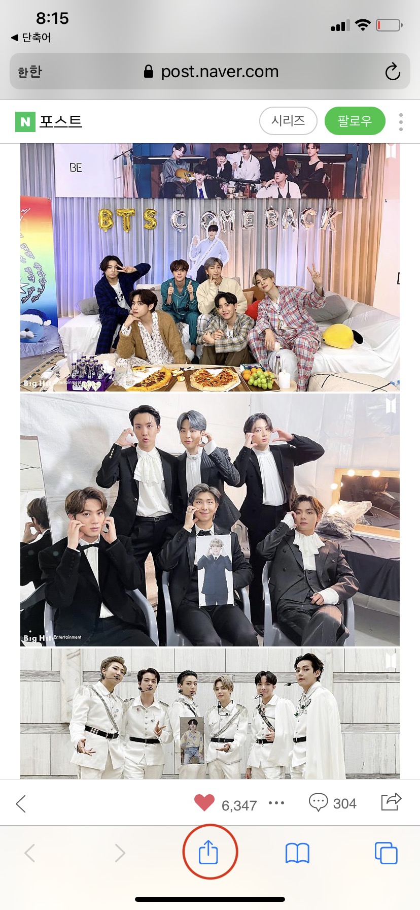 1. 사진 저장할 사이트로 들어가서 공유버튼 클릭