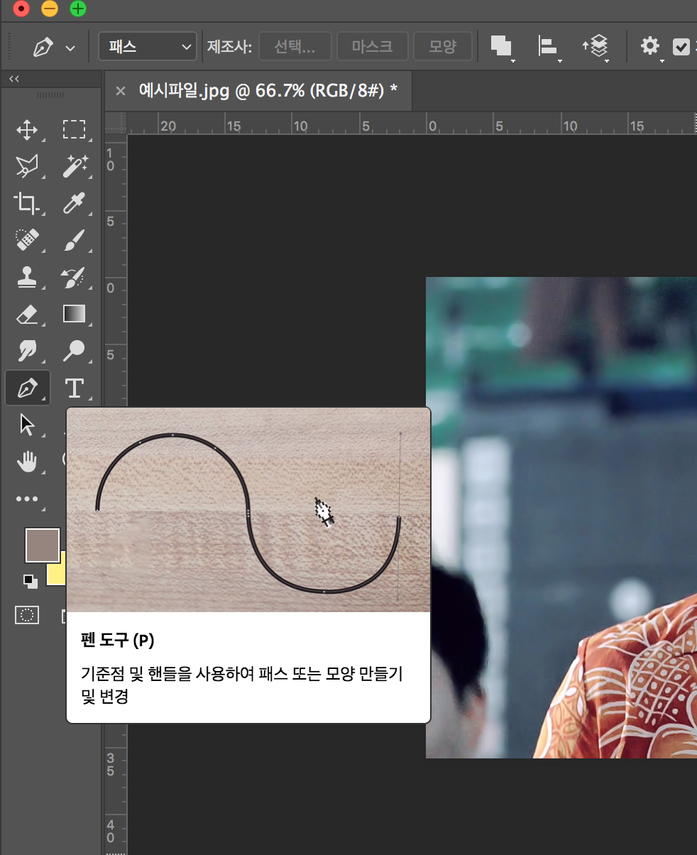 그 다음에 저 왼쪽 창에 있는 펜 도구를 눌러줍니다.