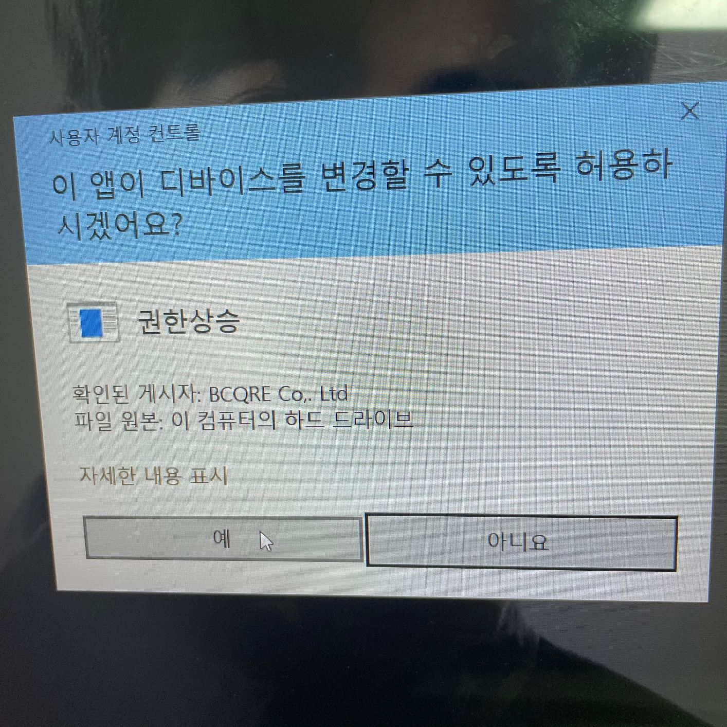 7. 이런 확인 창이 뜬 걸 예를 눌러주고 난 후에