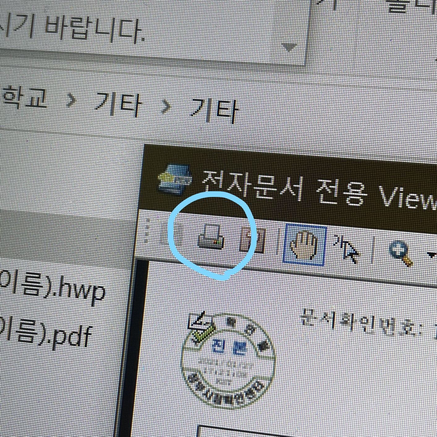 새로 발급받은 [문서출력]을 누르고 (뷰어를 설치하지 않은 경우 뷰어 먼저 설치하라는 페이지가 나옴)