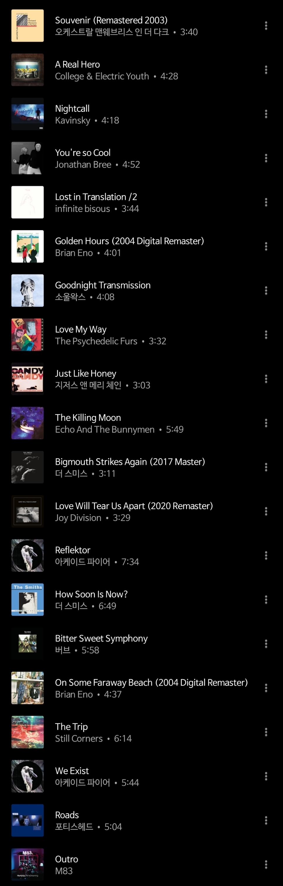 위의 곡이랑 분위기가 너무 잘 맞아서 같이 듣다 이렇게 플레이리스트까지 만들게 됐네