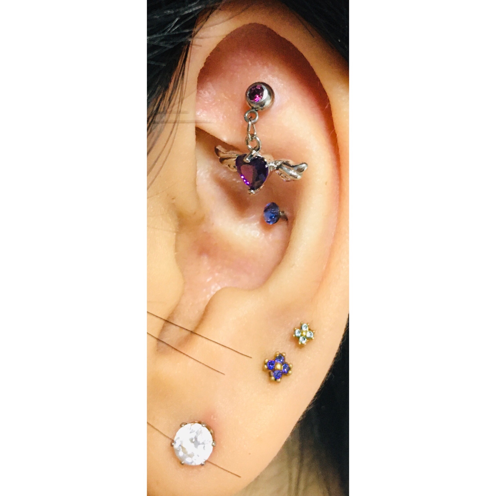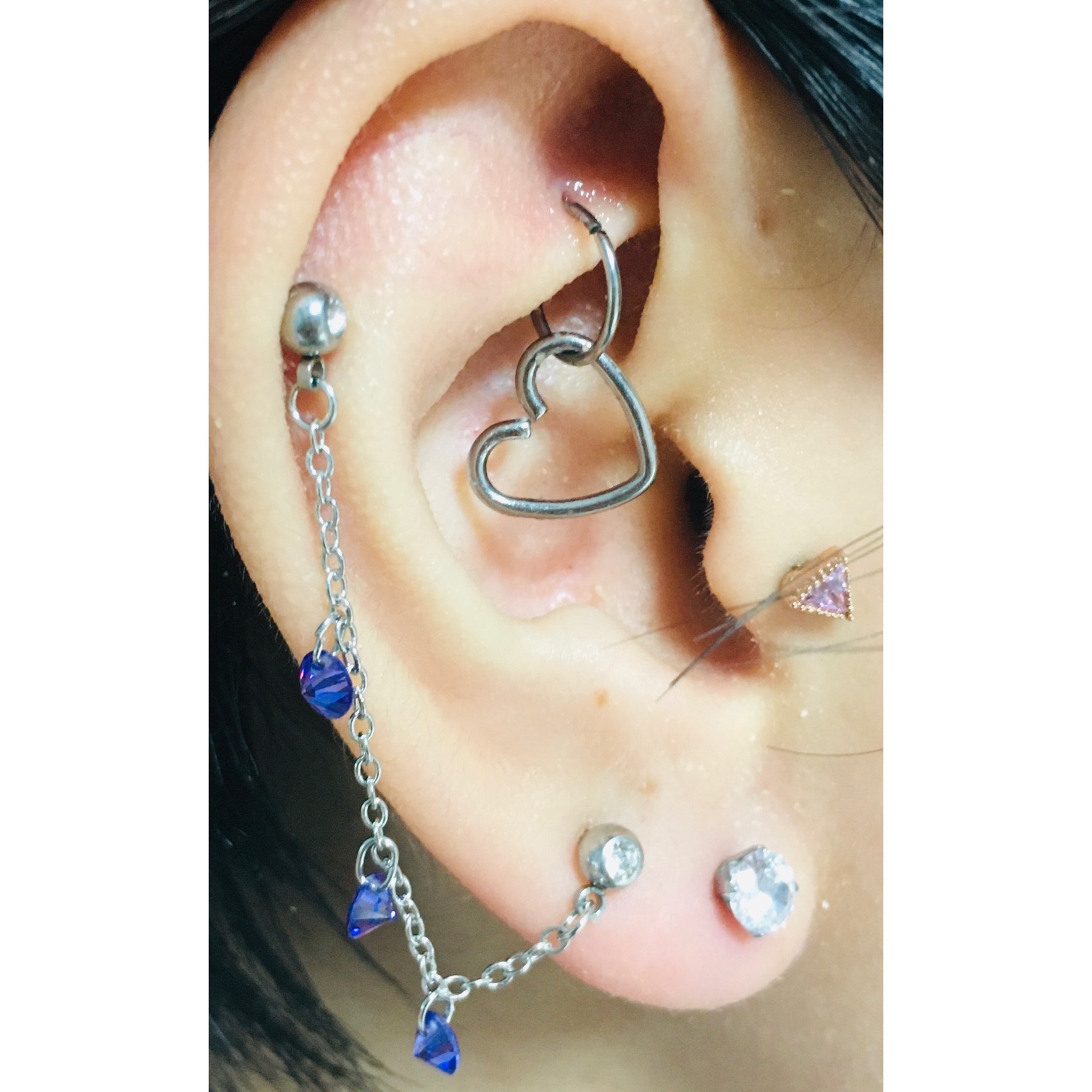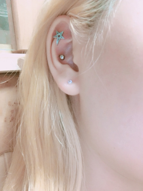 아프지도 않고 아물기도 금방 아문자리! 아웃컨츠 뚫기 전엔 여기에 가장 작은 피어싱으로 색깔만 줘서 포인트 주기도 했어