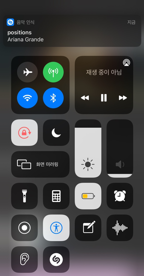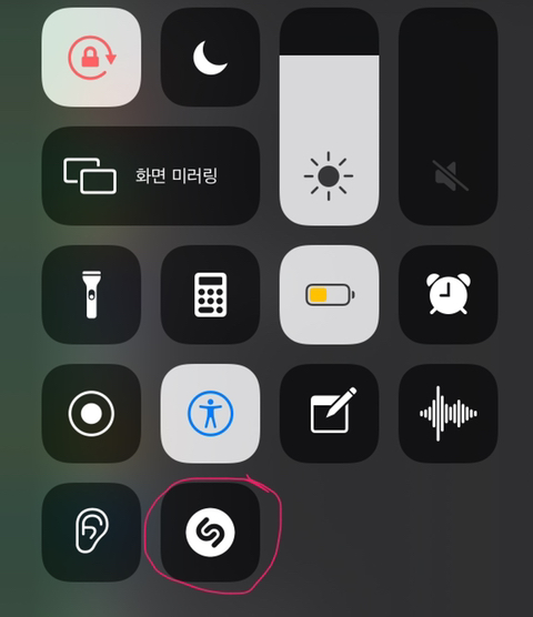 마지막으로 상단바 촤라락 내리면 제어항목에 음악 인식 아이콘 추가되어있는거 볼수있어!