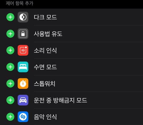 제어항목 추가 촤라락 뜨면 그중에 음악인식 추가해줘!