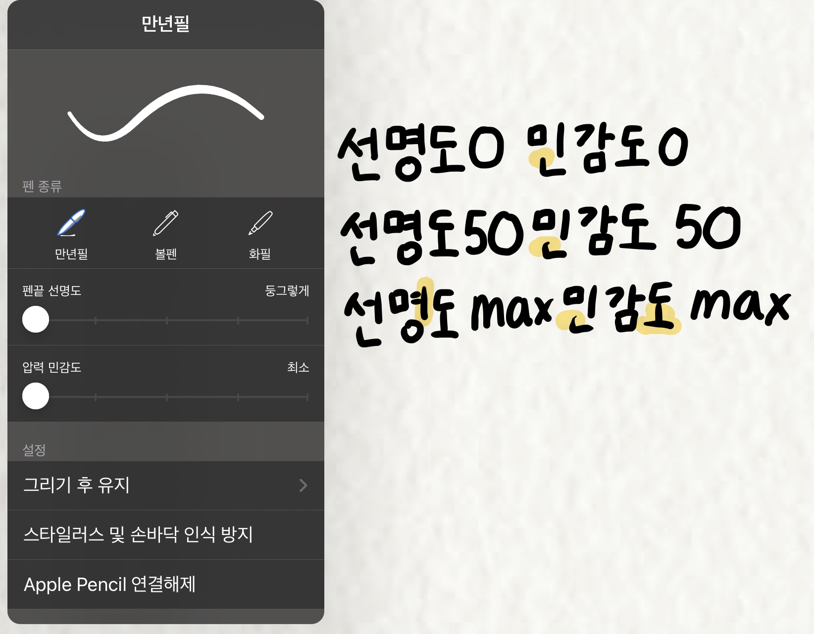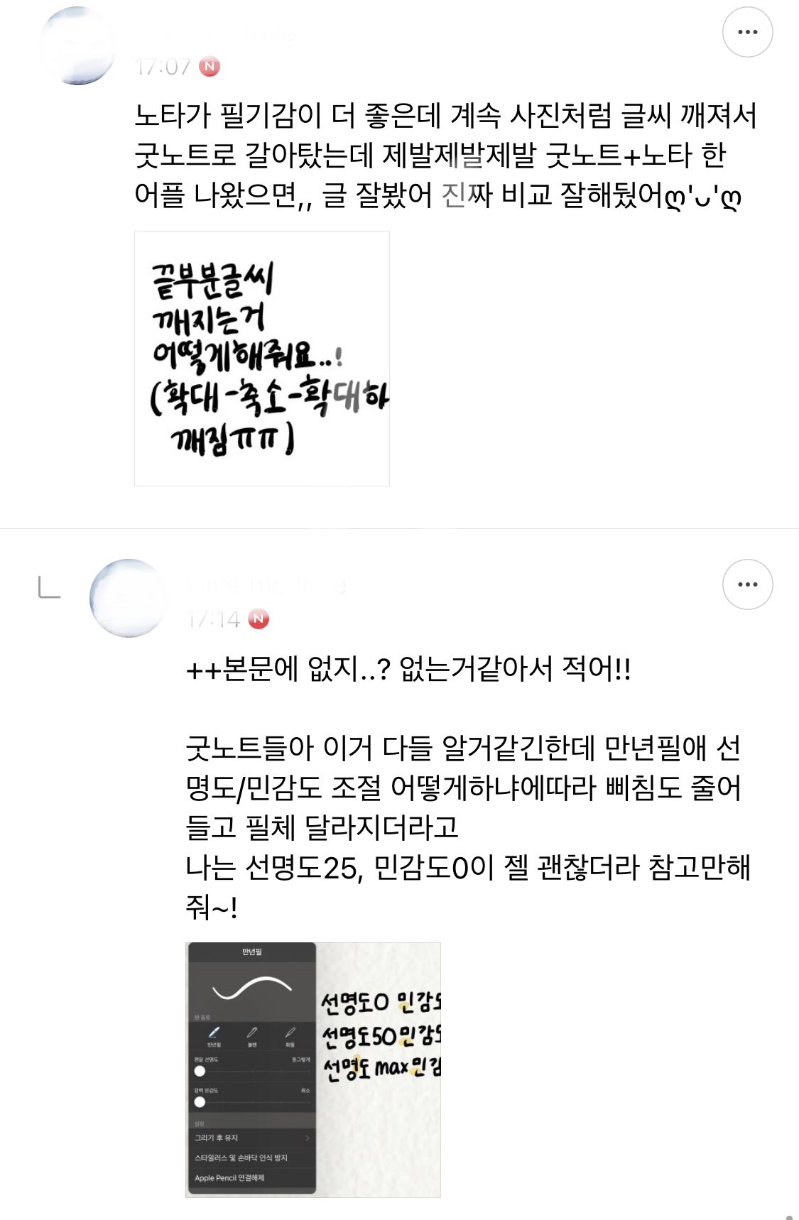 이거는 솔직히 말해서 나는 글씨체나 필기에 그리 집착하지 않고 둔한편이라 이건 확실하게 말해줄수가 없을거같아. 나는 어플 보다 액정 필름이나 펜촉의 영향이 더 큰거 같달까 (난 종이필름+생펜촉임)