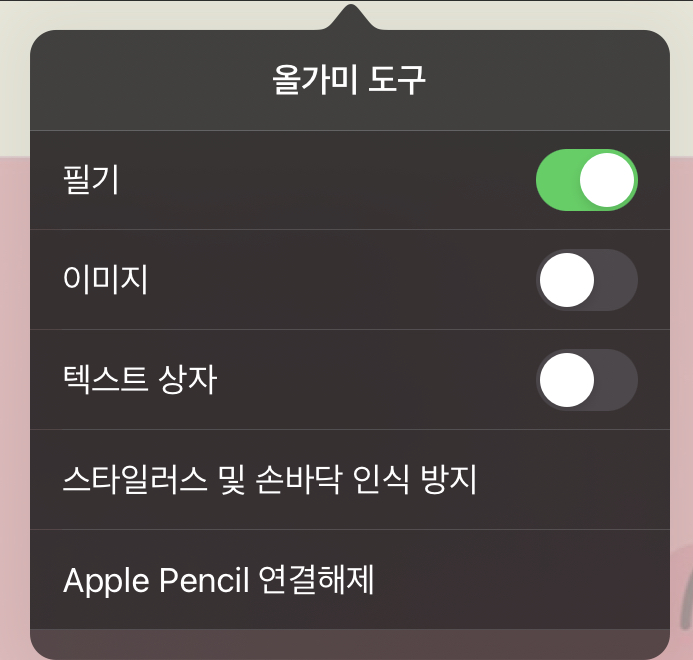 3. 필기, 이미지, 텍스트 중 선택이동 가능