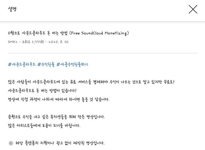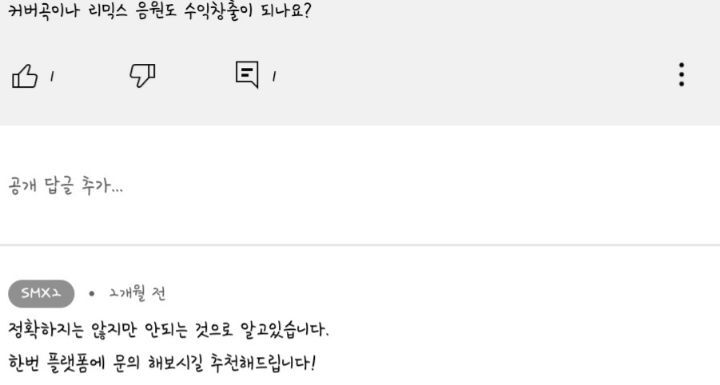 1. 다른 원곡자의 커버곡 / 리믹스 곡은 수익창출 할 수 없음.
