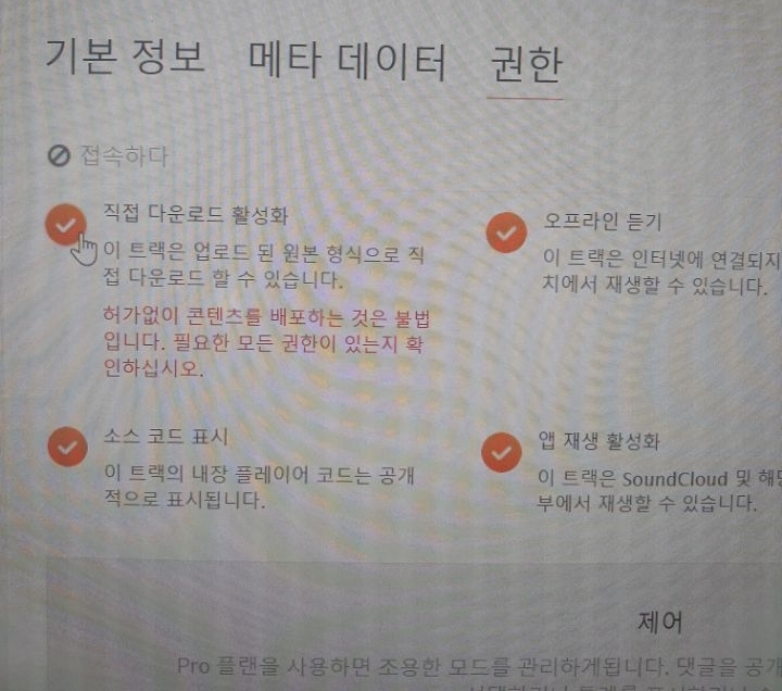 노래를 올린 사람이 사진처럼 다운로드 가능 활성화 기능을
