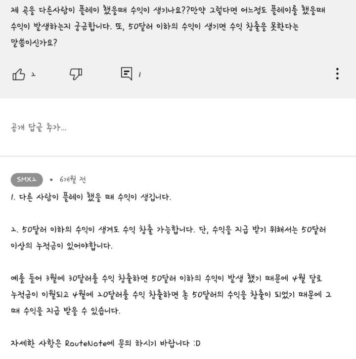 물론 코멘트 같은 경우 그 곡의 댓글을 달면