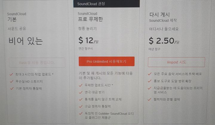프로 언리미티드 같은 경우 매달 $12달러 비용 지불해야해.