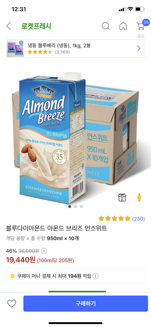 아몬드브리즈는 950ml로 일주일분량 만들어서 지금 두달동안 총 8팩 먹었고