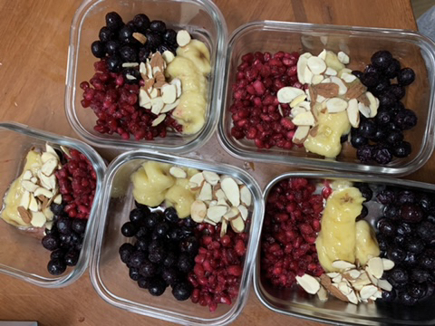그래서 지금은 최종적으로 나머지는 소분해서 냉동해두었다가 아침에 오트밀 담고 바나나는 들고가서 으깨먹는 형식으로 하고 있어!