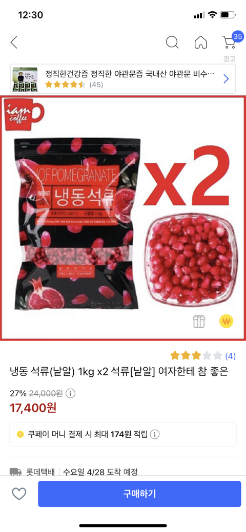 냉동 석류 2팩