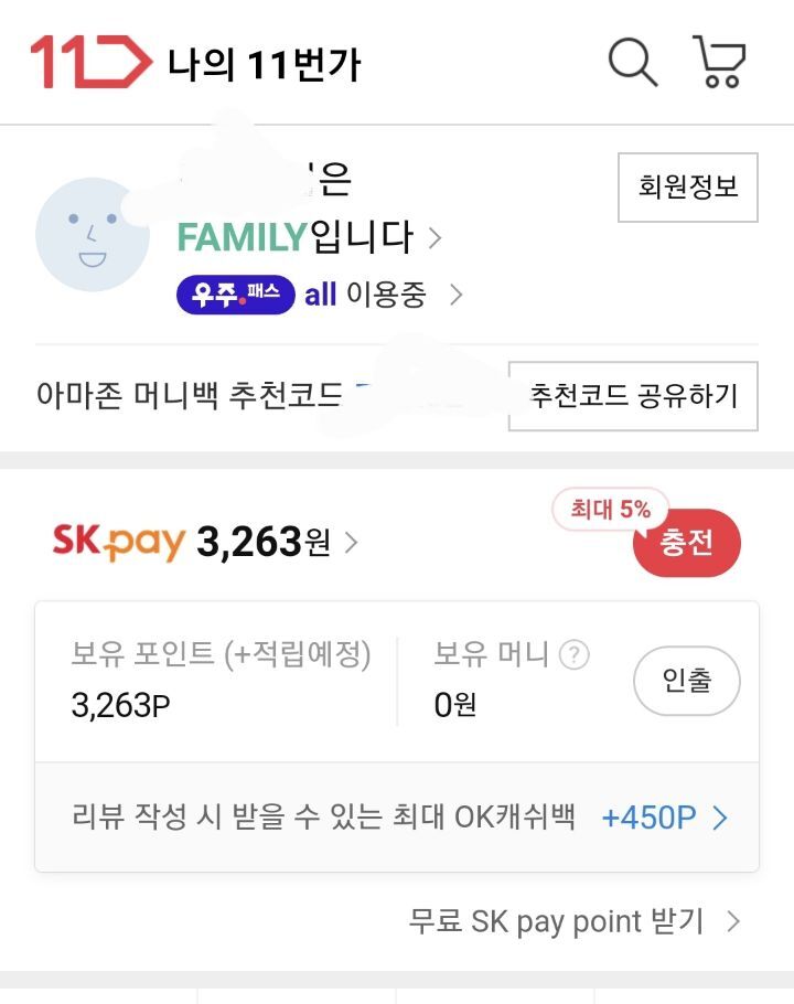 그리고 가입하고 11번가 바로 들어가봤는데 마이페이지 들어가보니까