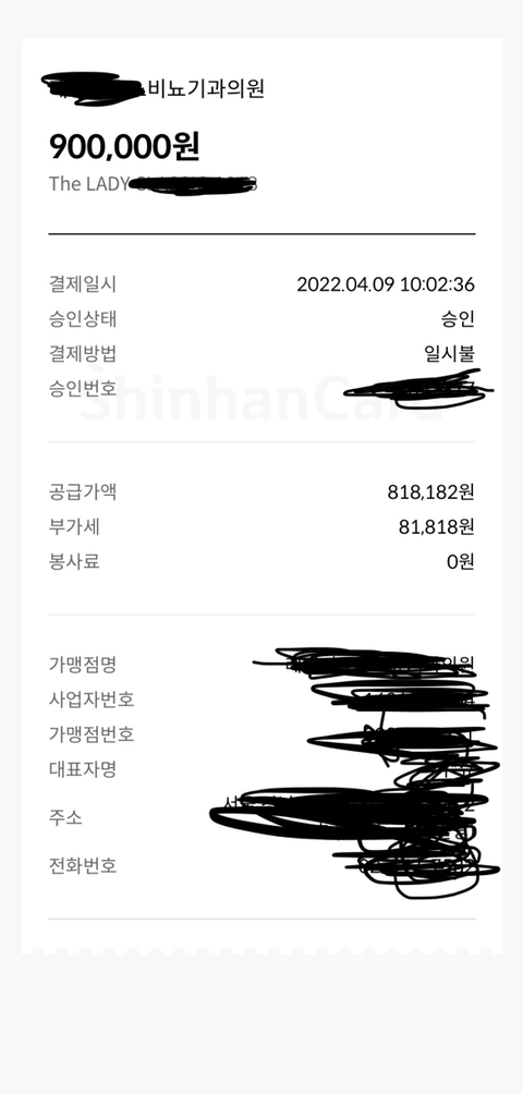 영수증은 예약금은 저번달이라 못찾겠구 오늘 결제한 90만원만 올릴게~ 여긴 카드값별도 이런거없더라