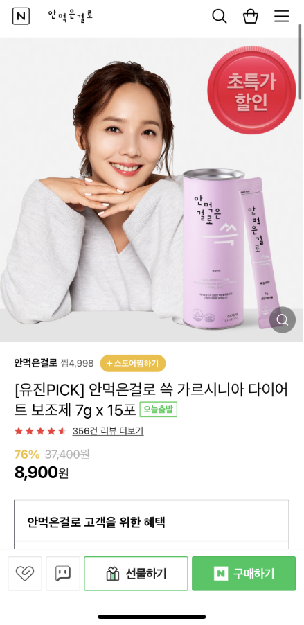 유진이 먹는 가르시니아 다이어트 보조젠데 15일치 8,900원이야