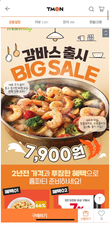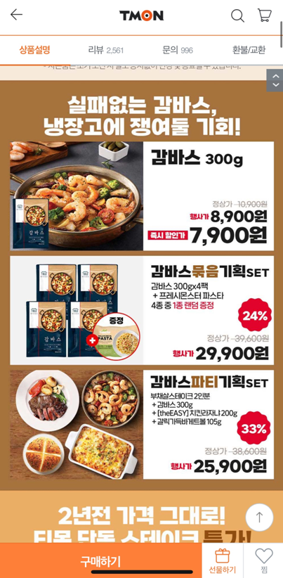 일단 1만원이상 무료배송이구 감바스랑 스테이크랑 지금 할인하고 있어