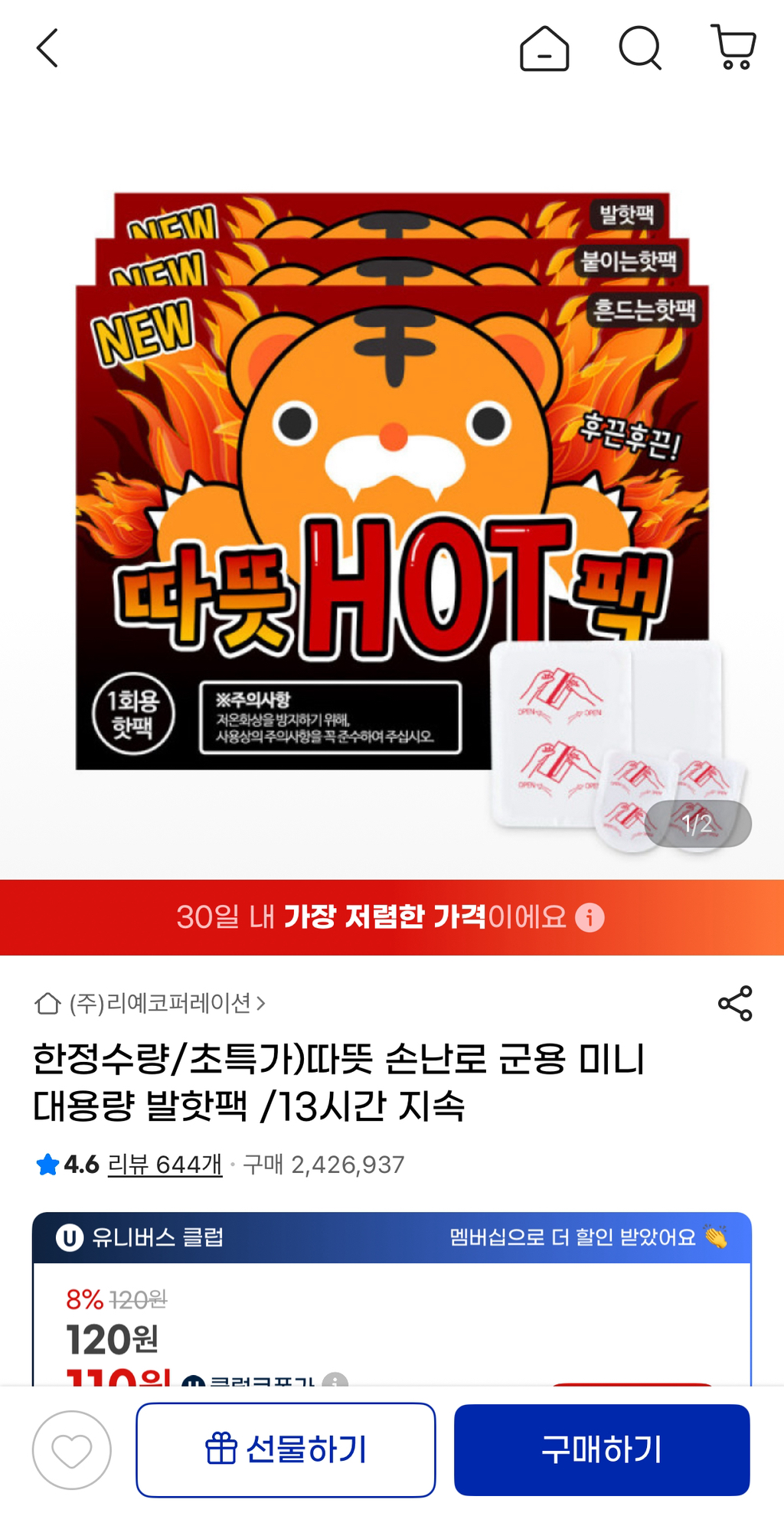 핫팩 안 떨어지게 미리미리 챙겨놔!