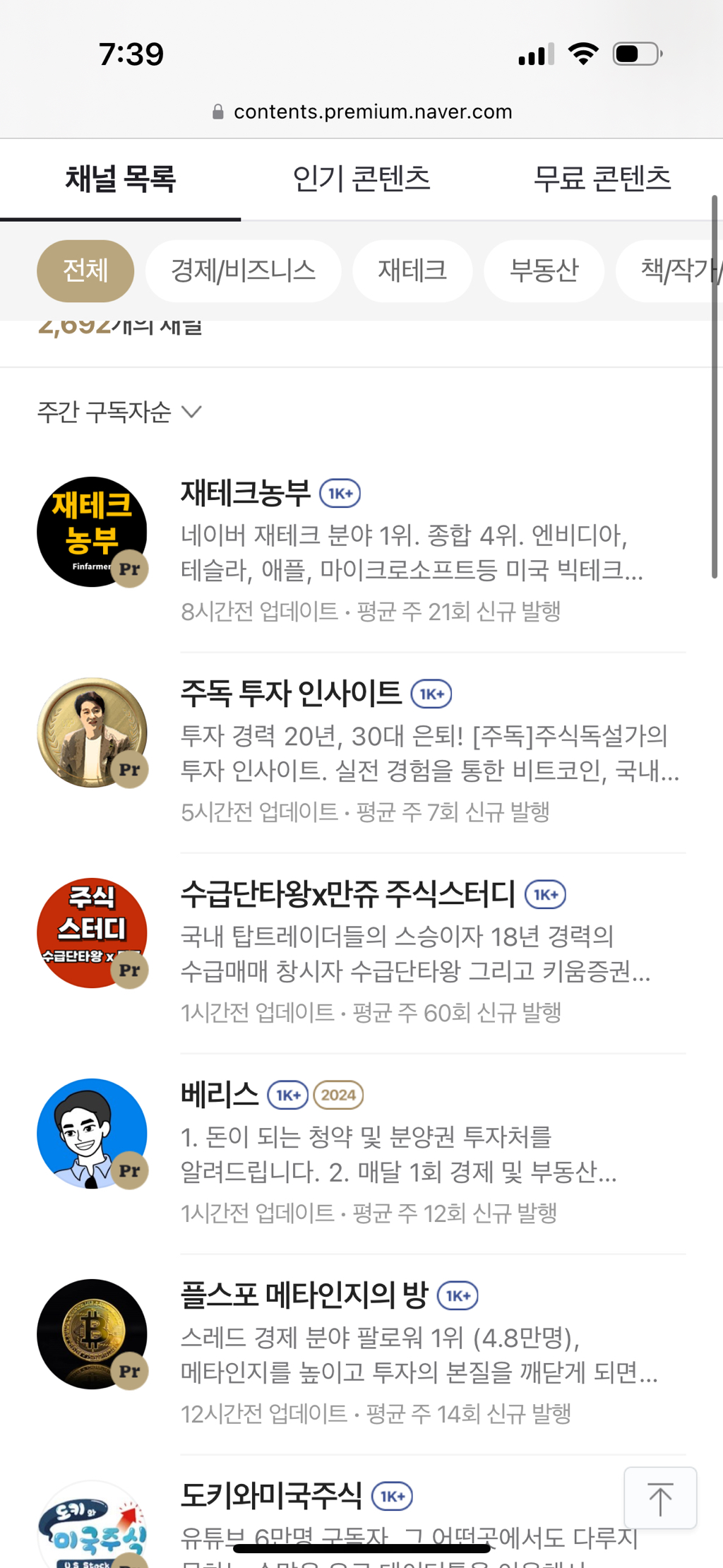 네이버 프리미엄 컨텐츠도 양질의 컨텐츠가 많아서 본인이 원하는 분야에서 읽어봐