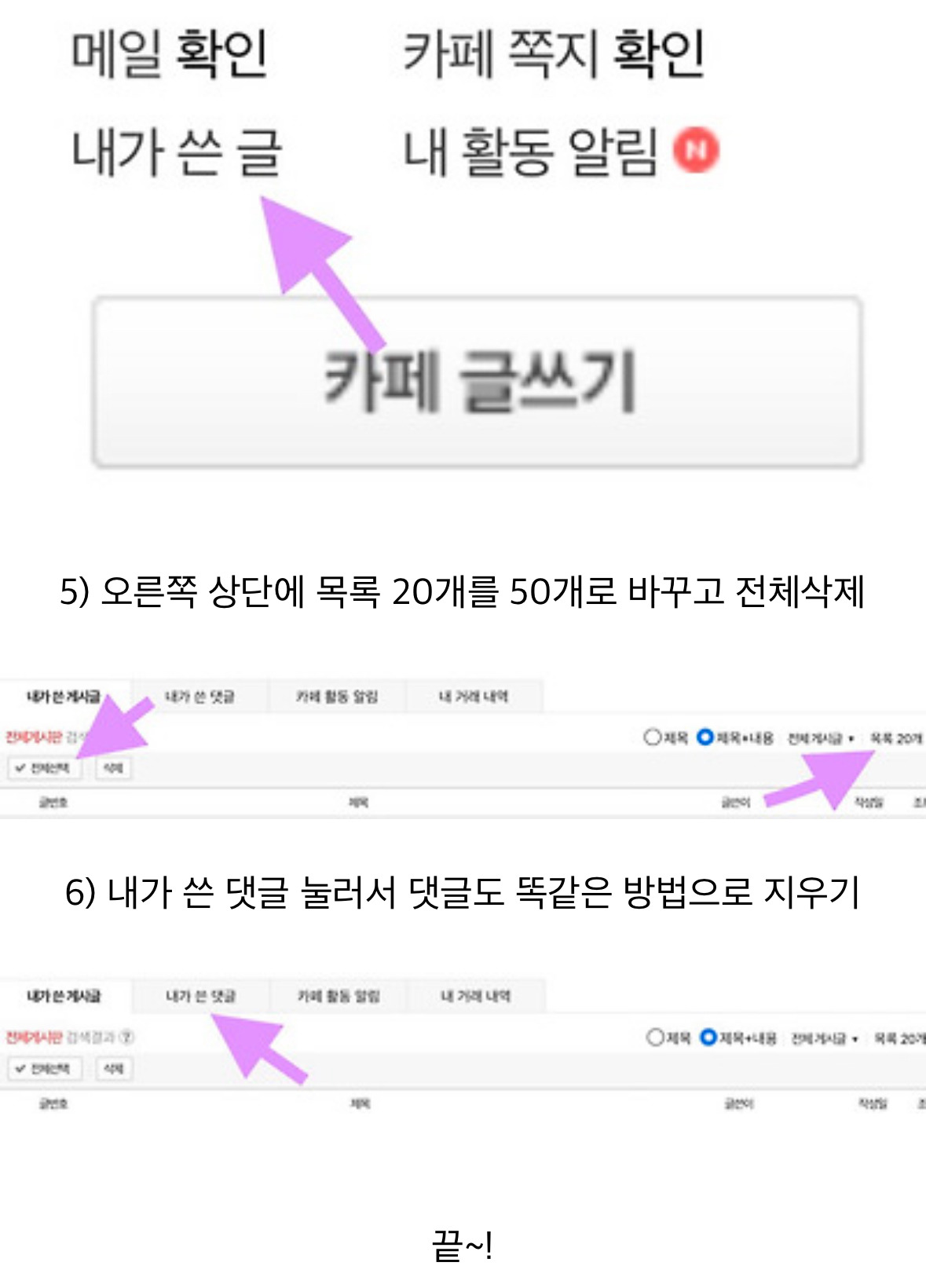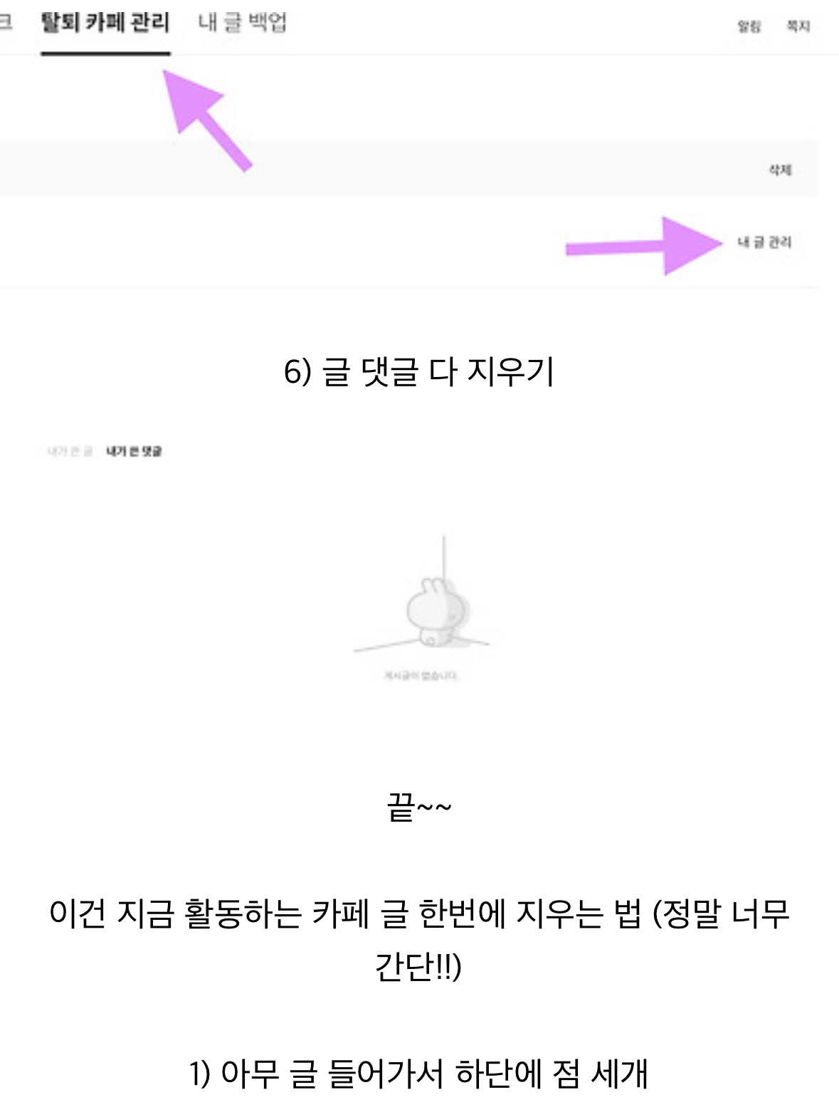 셀털이나 기타 이유로 카페에 쓴 글 정리 한번 싹 하고 싶은데 글이 너무 많아서 엄두도 못 내고 있거나 활동 중지된 카페에 쓴 글 지우는 법이야! 내가 옛날에 가입한 카페(별 카페 다 가입했더라고ㅋㅋㅋㅜ)가 왜인지 활동중지 되어있길래 그냥 탈퇴하고 글도 삭제하고 싶어서 찾아보다가 알게된건데 이미 다 아는 사실이라면 삭제하겠음..!
