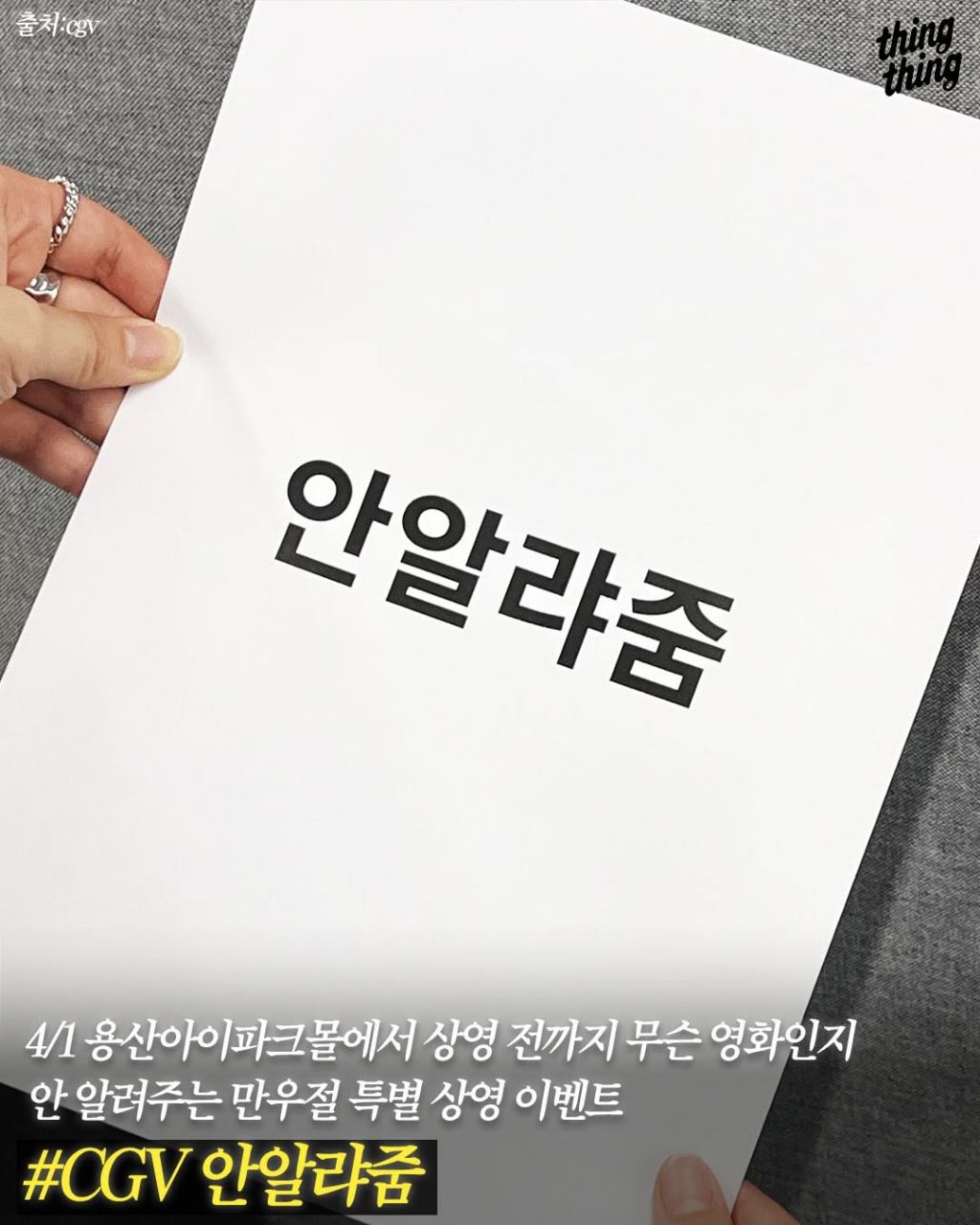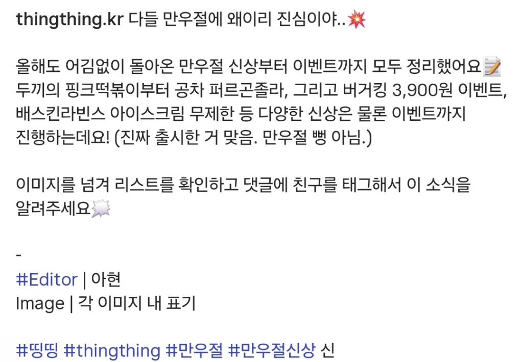 [기타]4/1 만우절 이벤트 총정리 작성자발효과학|작성시간26.04.01|조회수553 목록 댓글 1 글자크기 작게가 글자크기 크게가 https://www.instagram.com/p/DWh3yghk8hk/ 다음검색 현재 게시글 추가 기능 열기 북마크 공유하기 신고 센터로 신고 댓글 댓글 1 댓글쓰기 답글쓰기 댓글 리스트 작성자배고파도참을줄알아야지 | 작성시간 26.04.01 ㅋㅋㅋㅋ고마워 댓글 전체보기