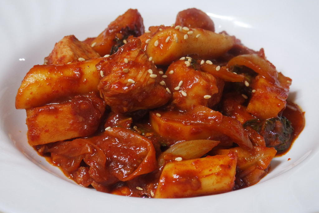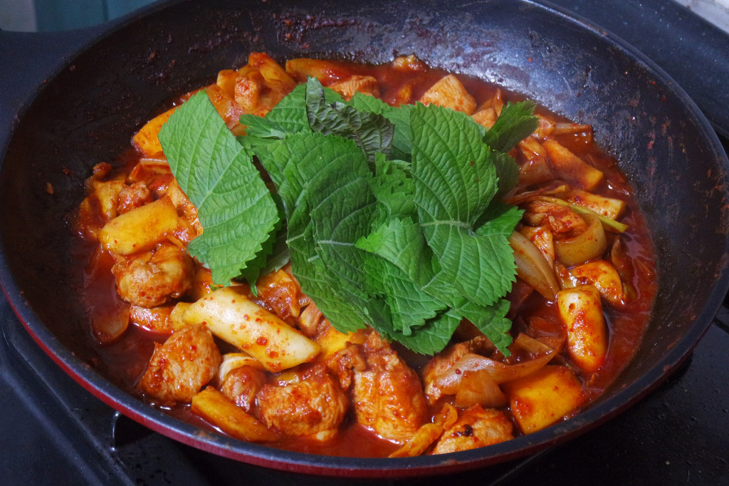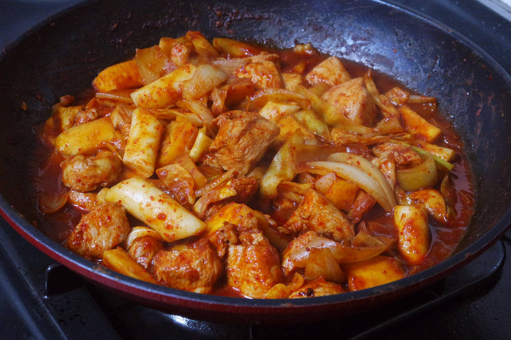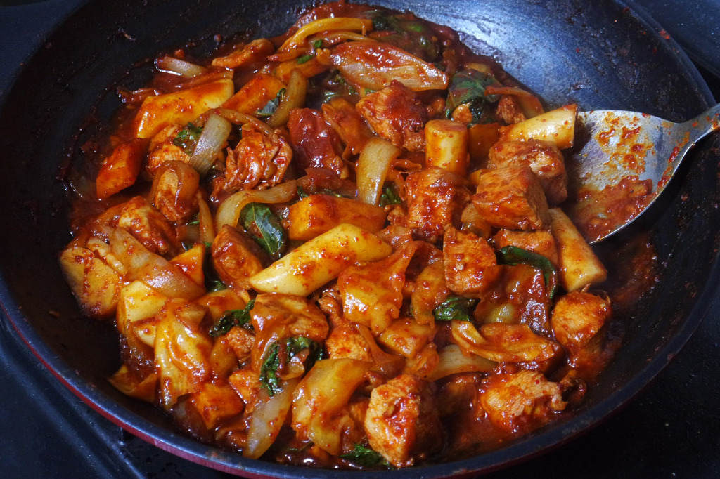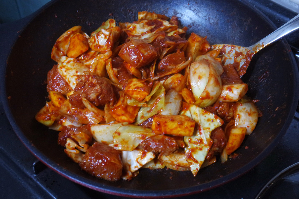 (양배추 1/6통, 고구마 1개, 양파 1개, 깻잎 15장, 떡볶이떡 소량 사용)