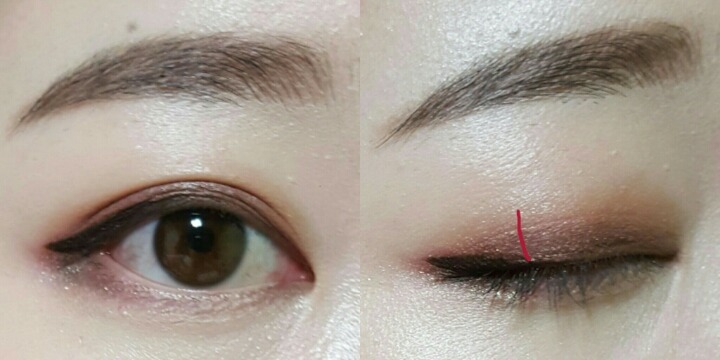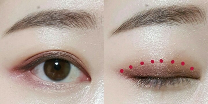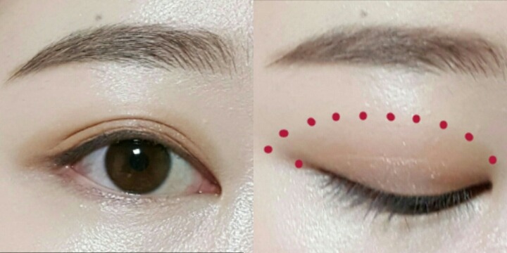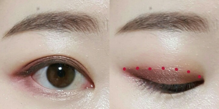 4번섀도우로 쌍커풀라인부터 빨간점선 안쪽을채우는데