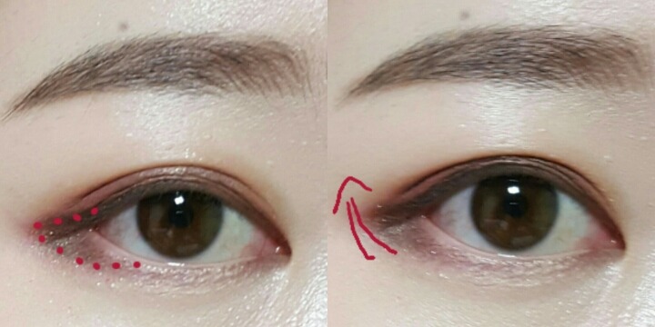 언더삼각존에는 칠하지않고 눈쌍커풀라인 안쪽으로 칠해주는데 자연스럽게 덮히면서 섞일거야