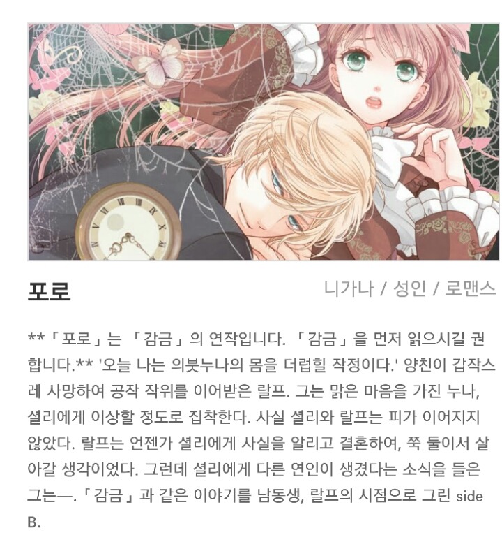 작성자[죽방알리미] 작성시간 16.04.05 오 고마워 ㅋㅋ 답례로 난 니가나의 내맘대로 라푼젤이랑 납치당한 스노우화이트 추천해줄게 ㅎㅎ 라푼젤이 언니커플 얘기고 스노우화이트가 동생커플인데 난 개인적으로 언니가 더 재밌어 계략+집착남주야
