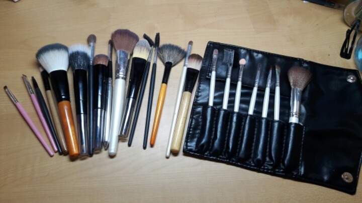 좀 많이써서 더럽긴한데...ㅋㅋㅋㅋ저거 섀도우 잘안묻어 코팅되어있는거같이. 특히 매트타입!!!펄섀도우바를때는 좋은거같아 눈두덩이 말고 언더에!!!눈두덩이에 섀도우 넓게 바르기에는 너무 작은거같애 라인따서 그리는거는 추천!!!!그리고 오른쪽에 넙덕한브러쉬 진짜 작은 잡티 가릴때 컨실러 브러쉬로 쓰기 좋다!!!섀도우 잘안묻으면 물티슈로 브러쉬 모부분 딱 잡고 결대로 한번 땡긴다해야되나?그러면 브러쉬에 물남아서 섀도우 진짜잘묻어!!!!나는 그렇게해서 언더에 펄섀도우 바른당