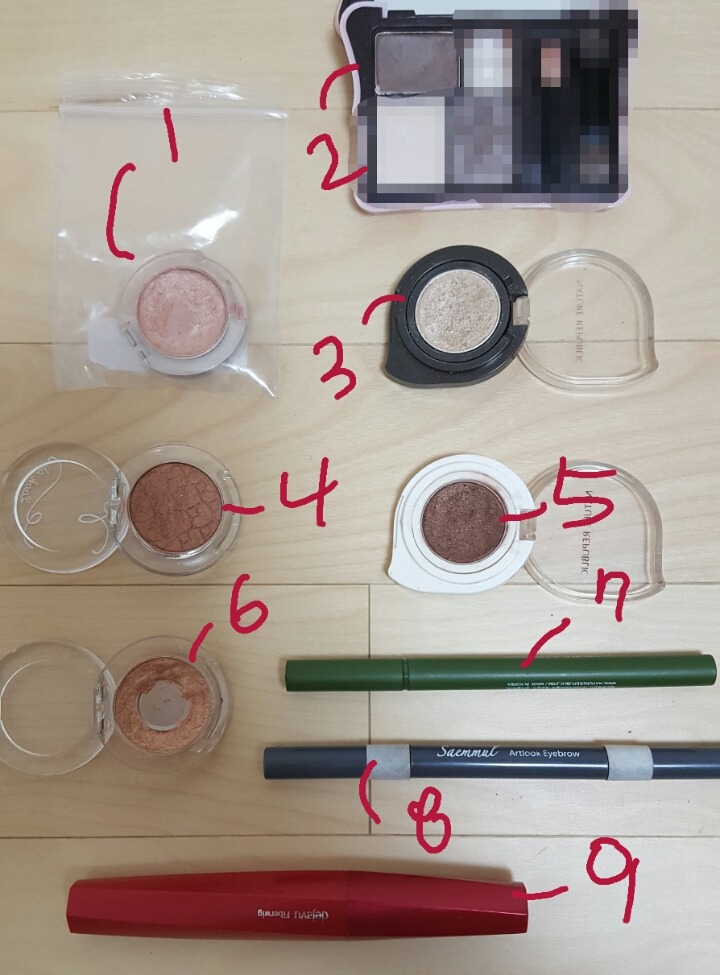 이섀도우는 입자가작은 골드빛의 섀도우인데 더 반짝거리는 금색 섀도우를 사용하면 좋을거같아!