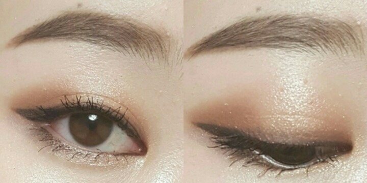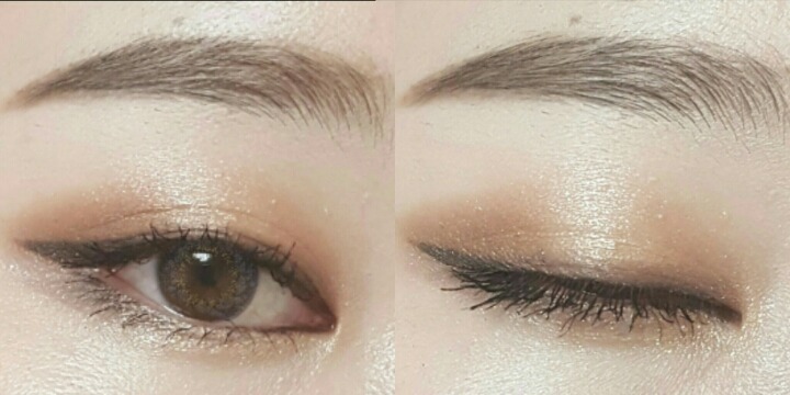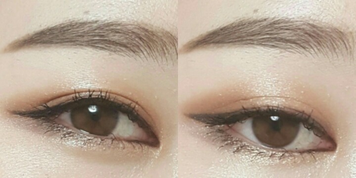 완성샷이에요. 실제로도 엄청진하진 않은데 진한게 좋으면 블랙이나 먹색 또는 진고동색 섀도우를 사용하세요!