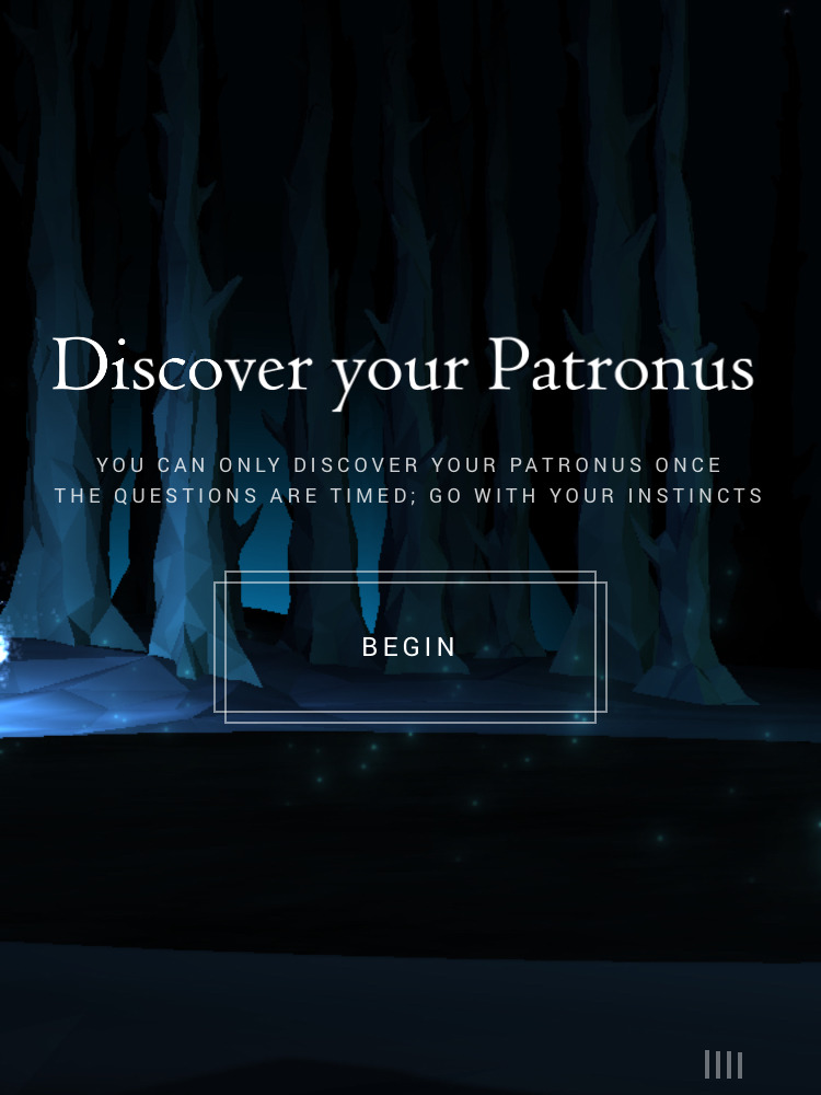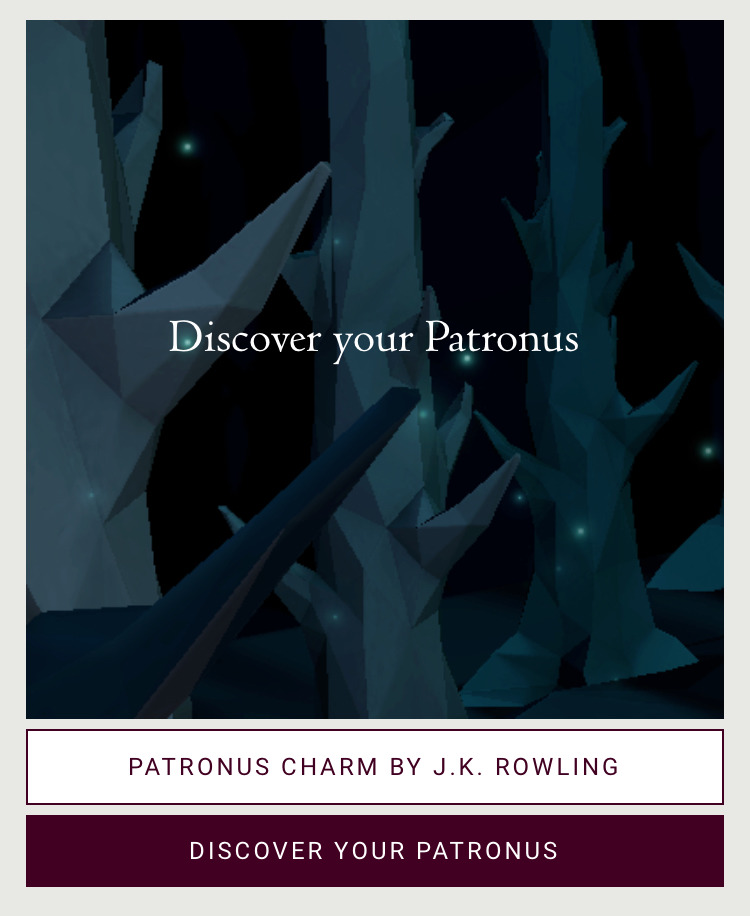 로그인을 하고 보이는 창에서 스크롤을 내려보면 이 창이 보일거야! [DISCOVER YOUR PATRONUS] 를 눌러보자!