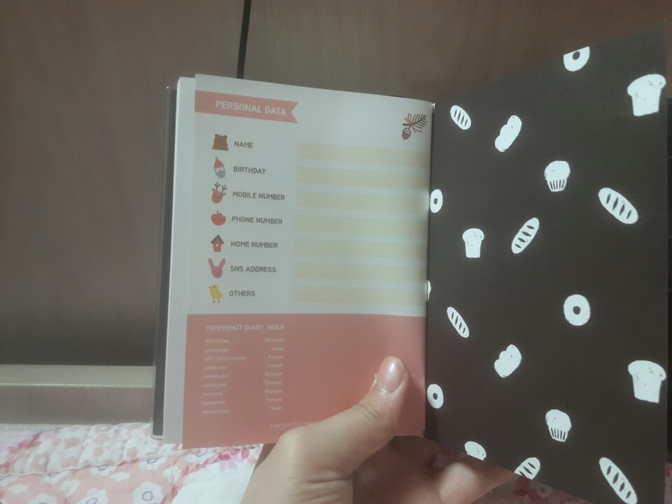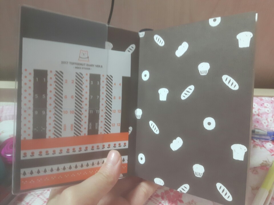 바로 다음장을 넘기면 스티커와 함께 종이를 끼울 수 있는 것이있닷! 빵일러스트도 아기자기햇>//<