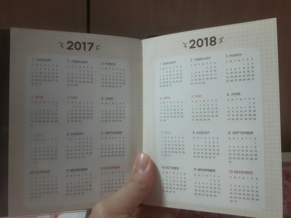 첫장은 2017년과 2018년의 달력이 뚜둥