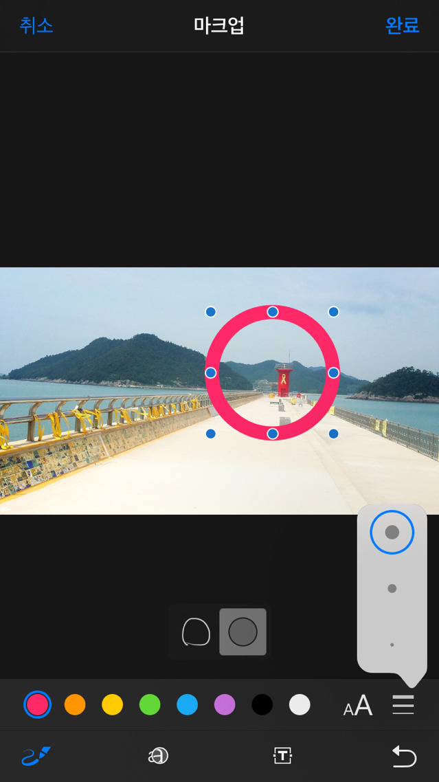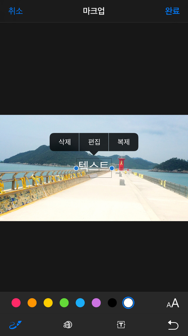 그림그리기, 돋보기, 텍스트 입력, 전단계로 돌아가기임!