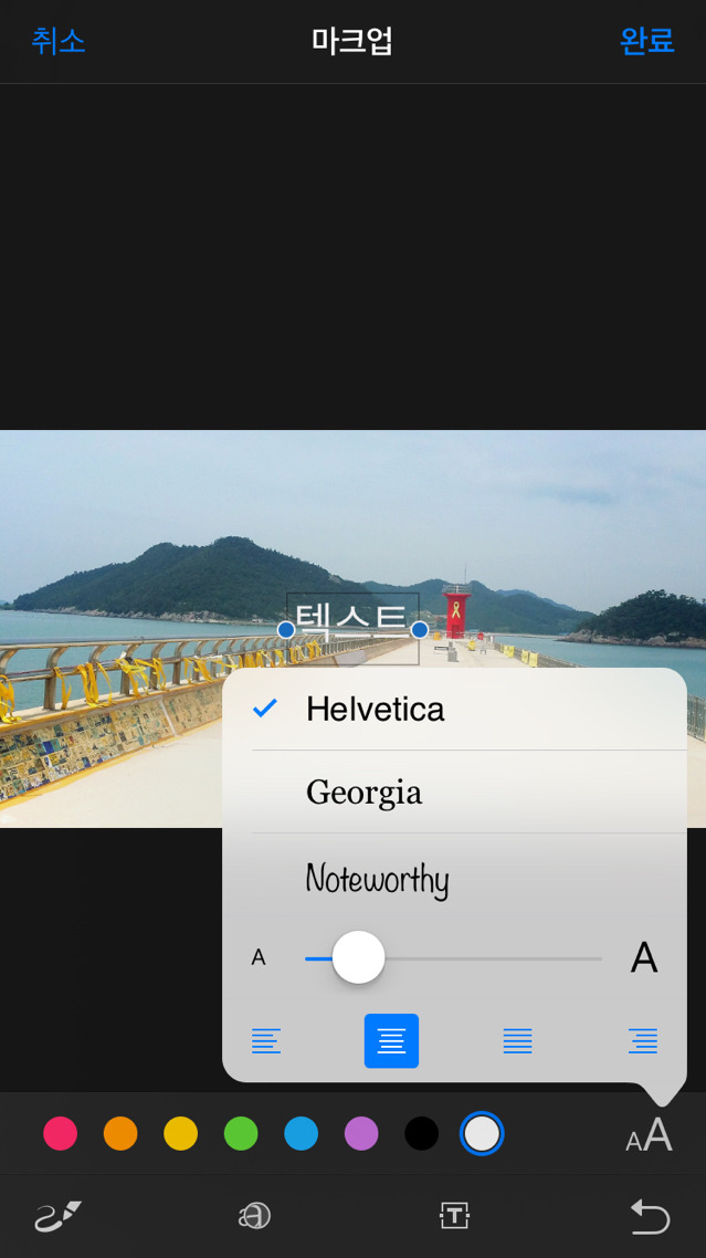 셋째, 텍스트 입력! 버튼 누르자마자 '텍스트'라는 창이 떠서 당황할수있지만. 당황하지 말고. 그것을 길게 누르면 됨.