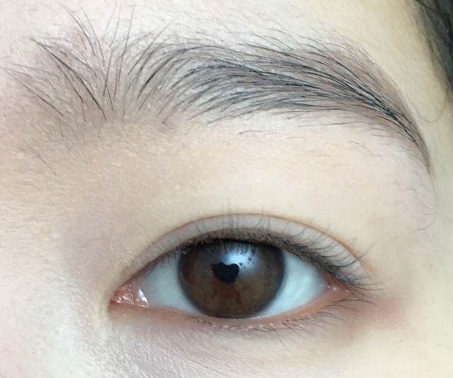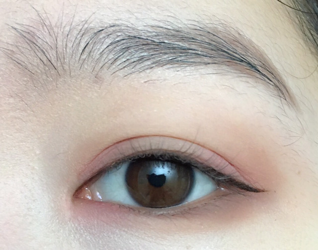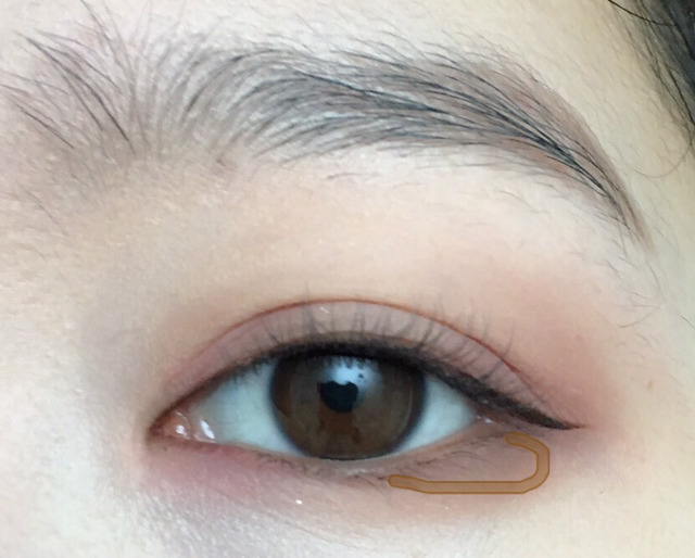 5. 브라운 붓펜라이너로 눈앞머리를 살짝 채워주고 꼬리를 밑으로 뺌(본인의 눈모양대로 평소에 그리는 방식으로 그리면돼! 대신 두껍지않게!!)