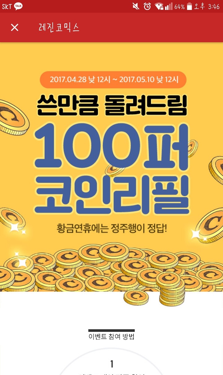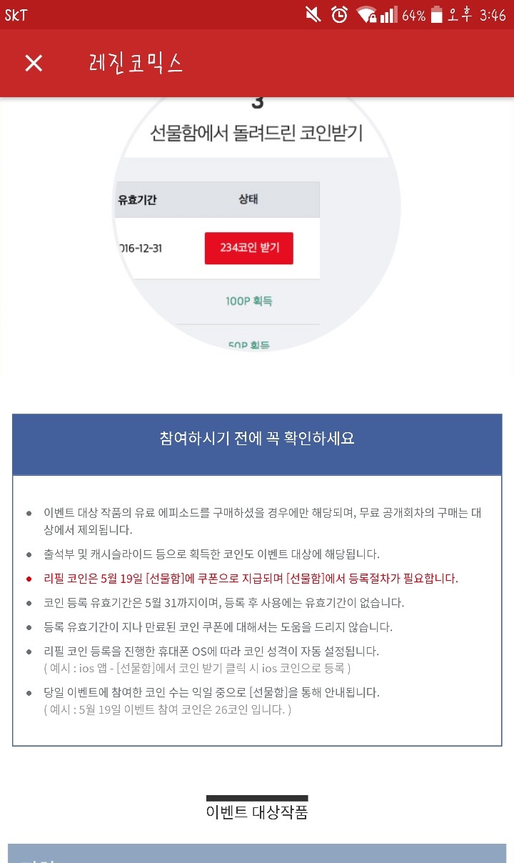 이벤트 기간동안 유료 만화 구매하면 5월 19일에 코인 다시 돌려주나봐 !! 레진 코믹스 전체 다는 아니고, 몇개만!!