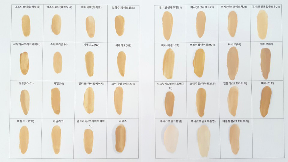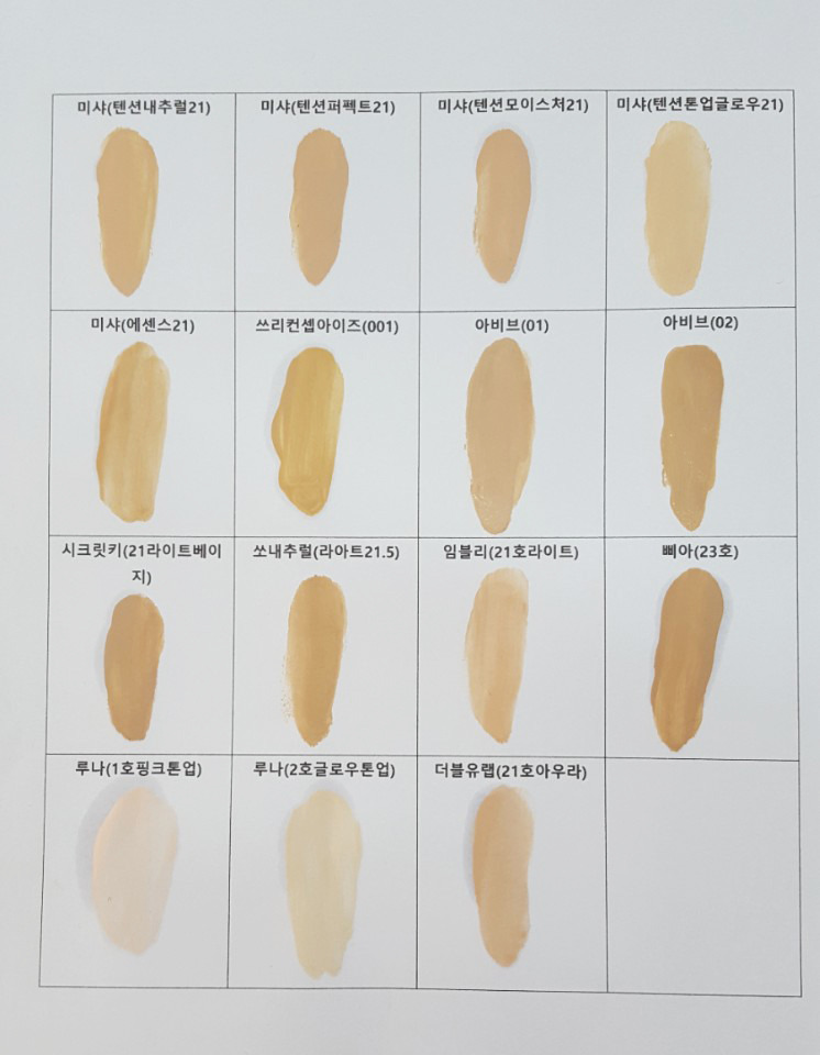 그래서 퍼프는 제외해두고 색상위주로 보여줄거고