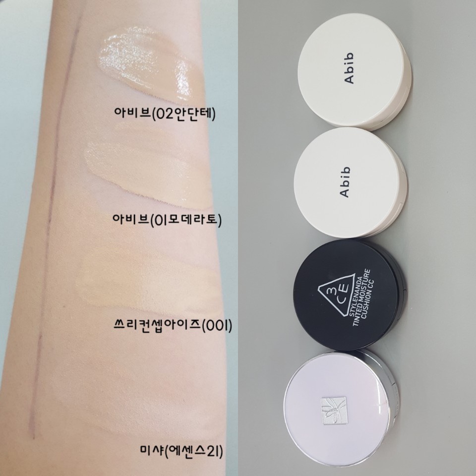 -미샤에센스쿠션21호 : 커버력은 약한데 색상이 엄청 화사하면서 엄청 촉촉해서 수정용으로 쓰기 좋음